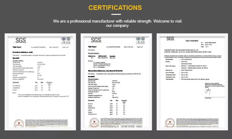 • Our raw material, semi-finished products and finished products are all via certification by SGS.